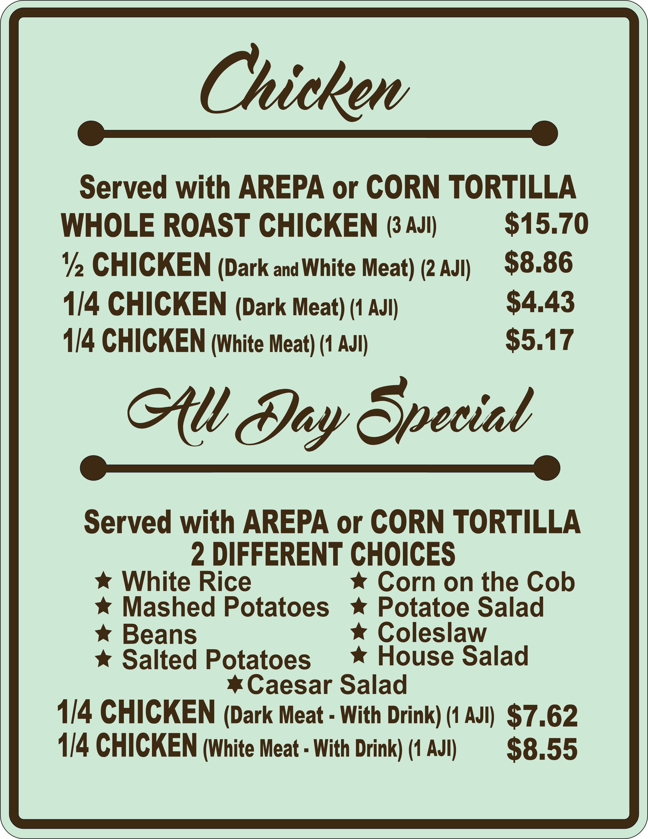 Pollo Riko's mission is to mimic the experience of dinning at a restaurant back in Colombia through our Charcoal Rotisserie Chicken over open flame with its flamboyant oven being the attraction.